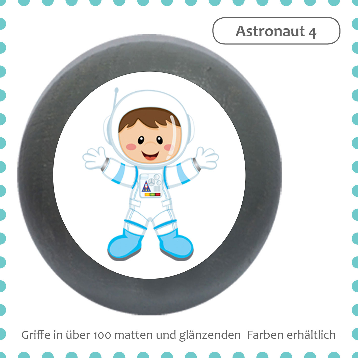 1 Möbelknopf in Deiner Wunschfarbe, mit Motivdruck "Astronaut 4" auf Aluminiumträger,