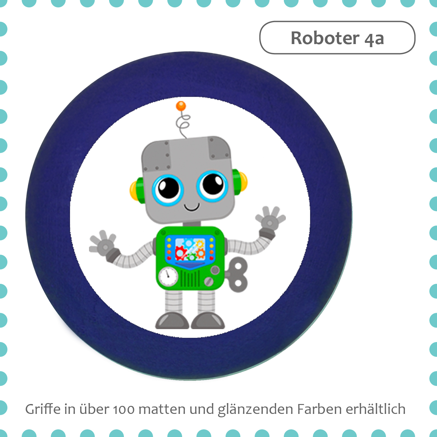 1 furniture knob in your favorite color with your image "robot 4a" printed on an aluminum inlay.