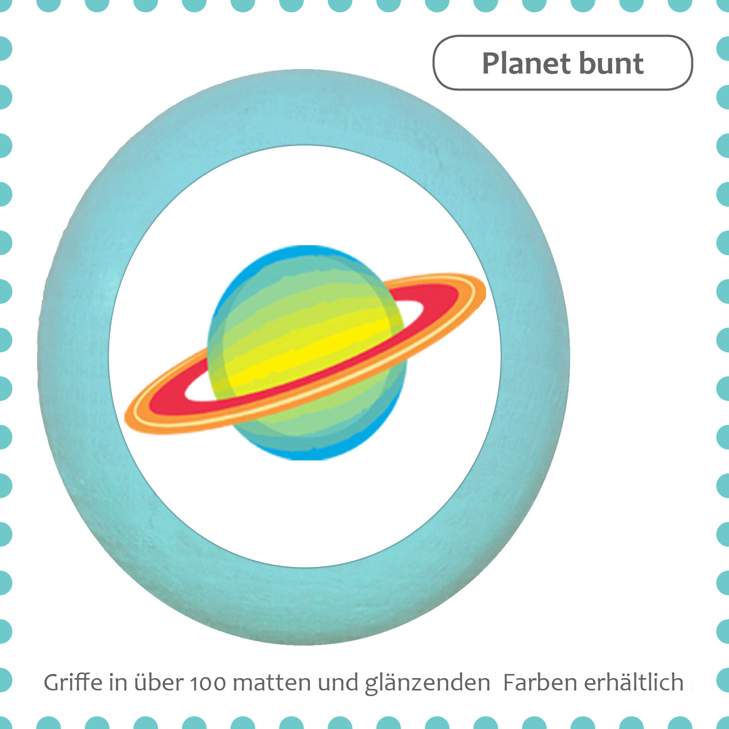 1 furniture knob in your favorite color with your image "rainbow planet" printed on an aluminum inlay.
