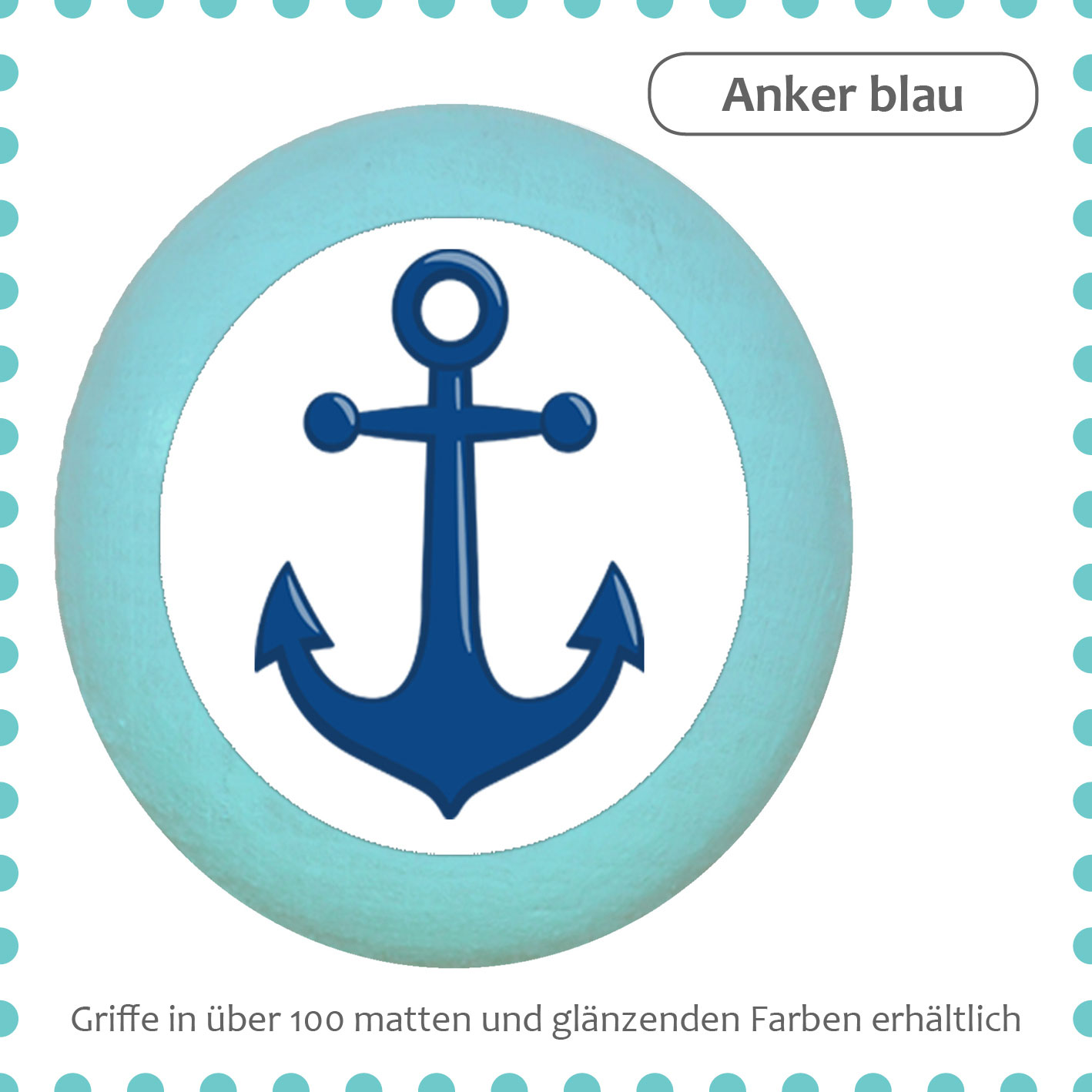 1 furniture knob in your favorite color with your image "anchor blue" printed on an aluminum inlay.
